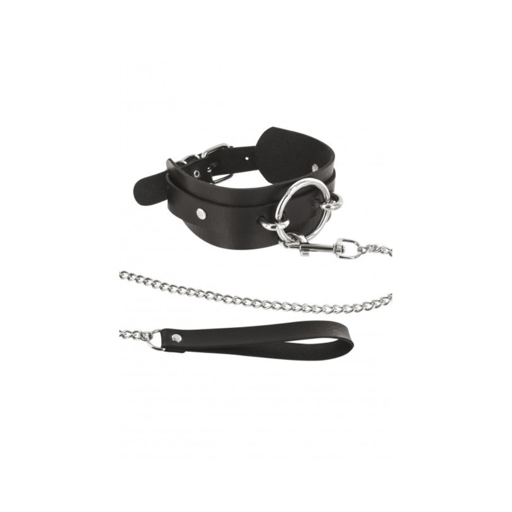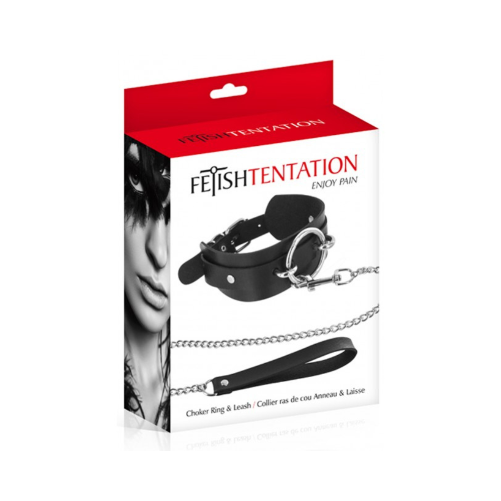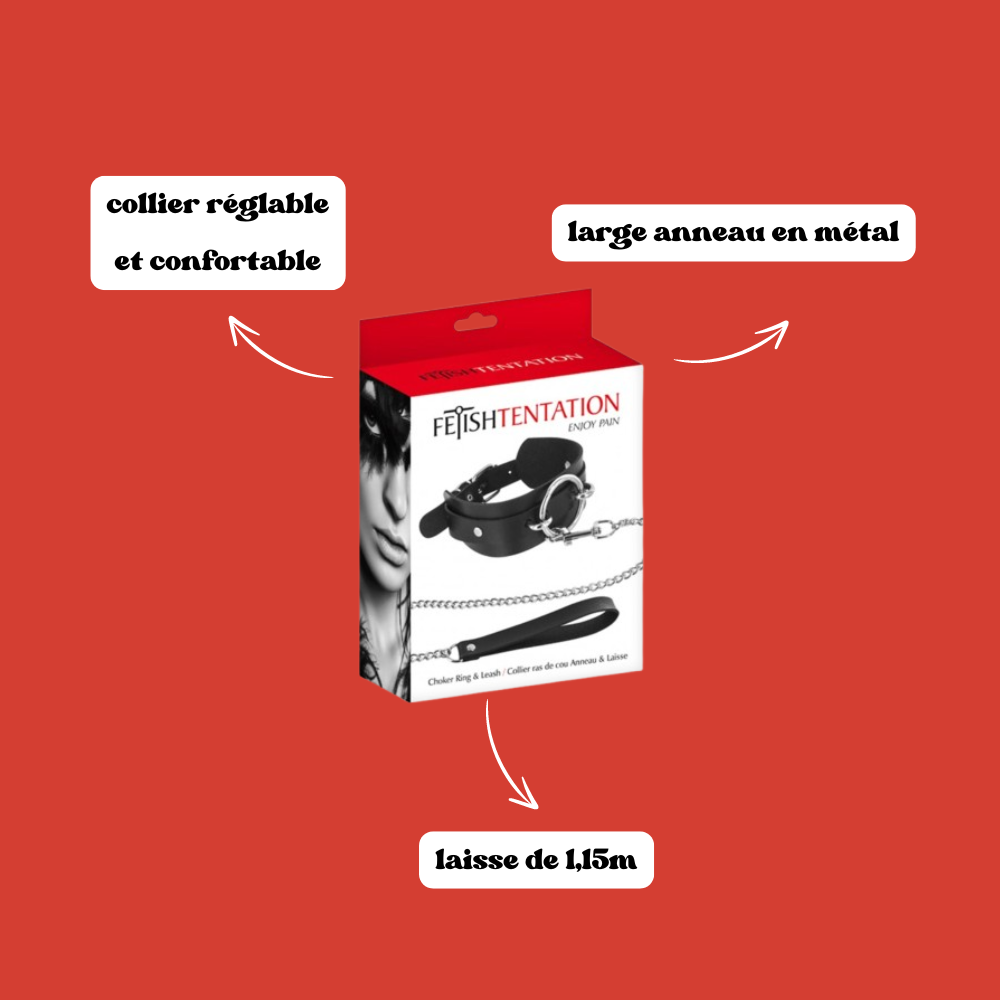 Découvrez notre collier fétichiste doté d'un large anneau métallique et d'une laisse !