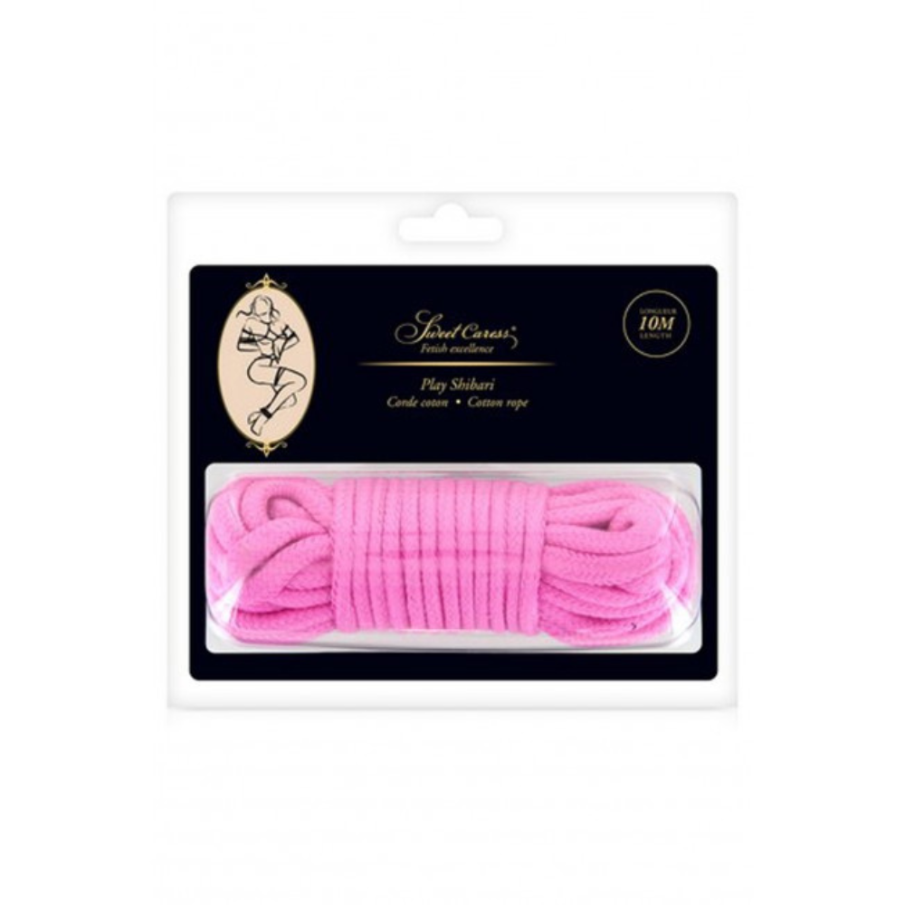 Corde de bondage shibari de 10 mètres. 3 couleurs au choix. La texture de cette corde en coton très douce vous permettra des jeux de bondage sans risque. Une corde rose pour le shibari qui laisse de nombreuses possibilités grâce à sa longueur.