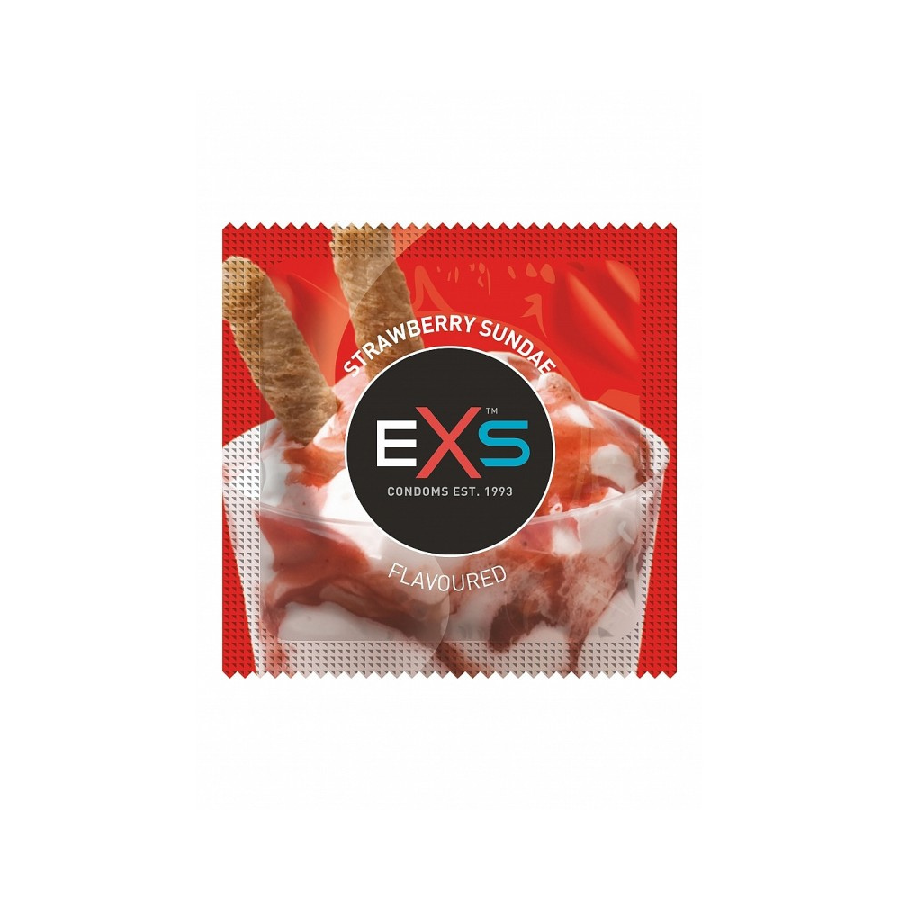 Lot de 2 préservatifs lubrifiés en latex avec réservoir, certifié ISO 4074. 4 parfums au choix parmi bubble gum, sundae fraise, cola ou chocolat.