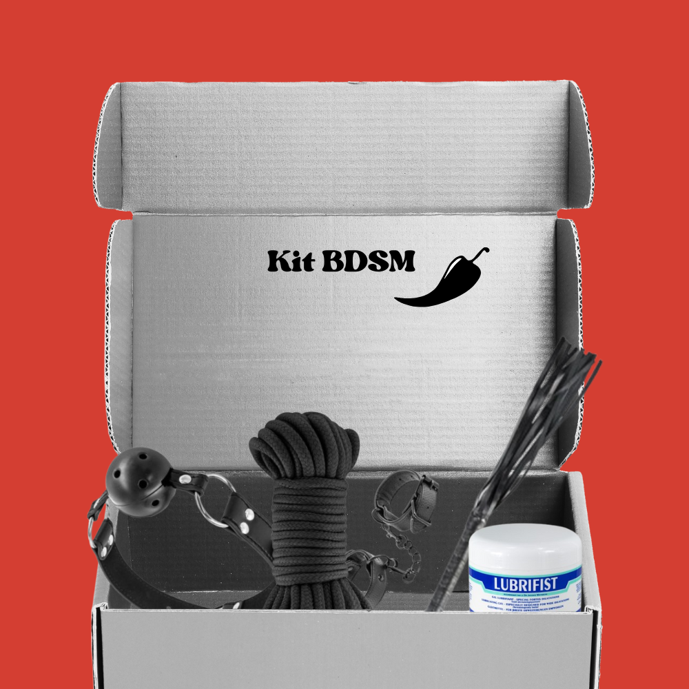 Découvrez notre kit BDSM qui comprend une corde de bondage shibari, des menottes ajustables en simili cuir, un bâillon boule à trous, un fouet martinet en simili cuir et un lubrifiant à base d'eau spécial fist. Ces produits essentiels sont parfaits pour vous initier au bondage.